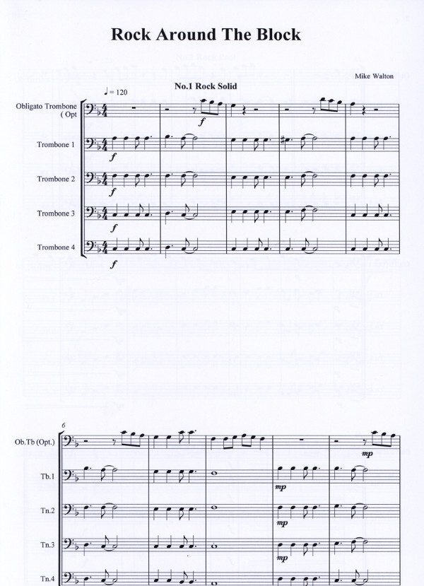 (4 einfache Quartette im Rock-Stil, enthält auch eine zusätzliche Stimme ad libitum, die von einem fortgeschritteneren Schüler gespielt werden kann) für Posaune (oder Trompete), Posaune, Posaune (oder Horn) + Posaune