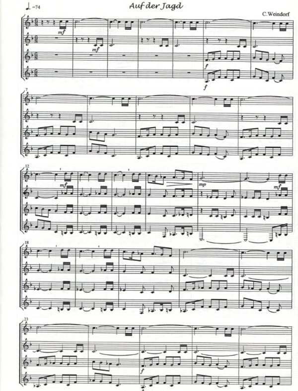 4 Sätze Auf der Jagd In den Bergen Im Zirkus Tanzpotpourri 4. Horn im Violinschlüssel teilweise bis zu 5 b sehr effektvoll gut für "Jugend musiziert" geeignet