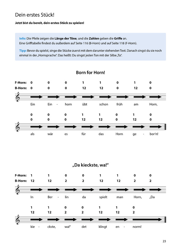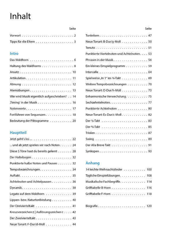 Das erwartet dich: " Themen wie Haltung, Atmung, Anstoß und musiktheoretische Grundlagen werden leicht verständlich und anschaulich erklärt. " Zahlreiche Solostücke, Duette, Übungen und Etüden aus verschiedensten Stilrichtungen sorgen für Abwechslung und Motivation und fördern gleichzeitig die technischen und musikalischen Fähigkeiten. " Rhythmusübungen zur Schulung des Rhythmusgefühls. " Legato auf dem Horn. " Individuell anpassbares Einspielprogramm. " Weihnachtslieder für festliche Auftritte und zusätzliche Spielfreude. " HORN TOTAL ist die ideale Ergänzung zur