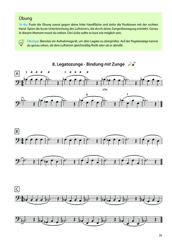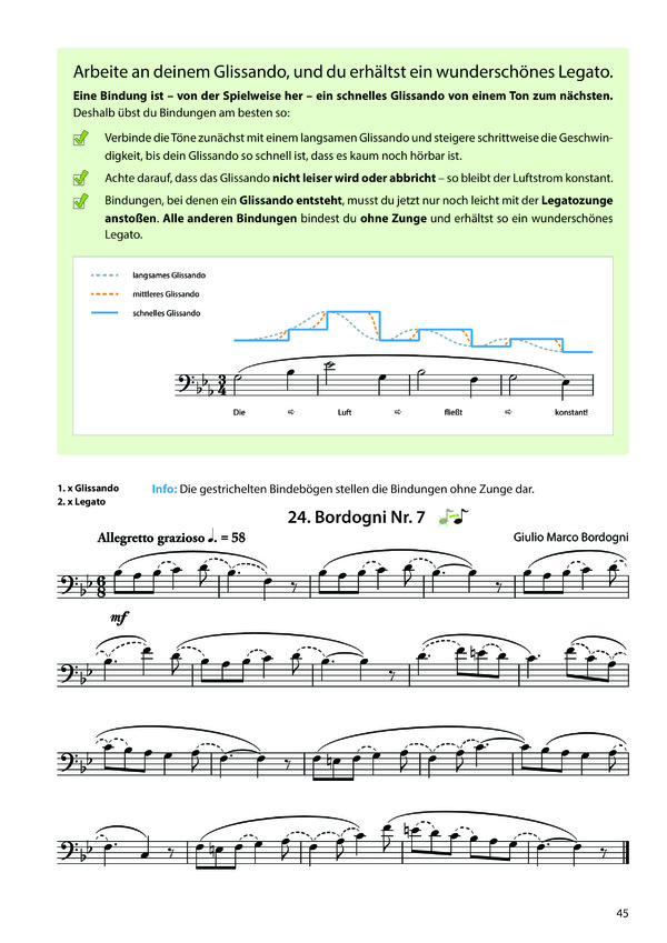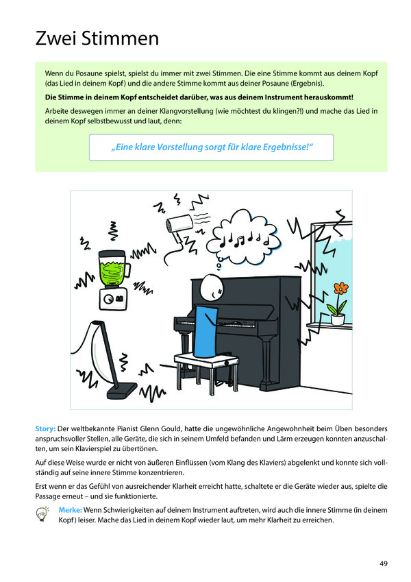 Zahlreiche Stücke, Duette, Rhythmusübungen und Tonleiterstücke mit praxisnahen Spielanweisungen