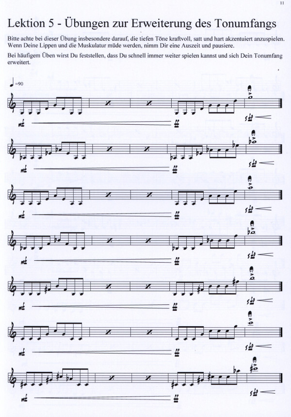 Die nachfolgenden Übungen waren und sind für mich die Grundlage für ein hohes Maß an Ausdauer, Flexibilität, eine sichere Höhe sowie einen vollen und schönen Ton. Egal welcher Ansatzmethode du unterliegst, verbessern diese Übungen bei Beachtung einiger weniger Grundregeln schon in relativ kurzer Zeit auch Deine Ausdauer, Höhe, Flexibilität und Tonkultur. Viele der folgenden Praxistipps sind entstanden, nachdem ich mir auf der Höhe meiner Karriere den Ringmuskel durchblies.