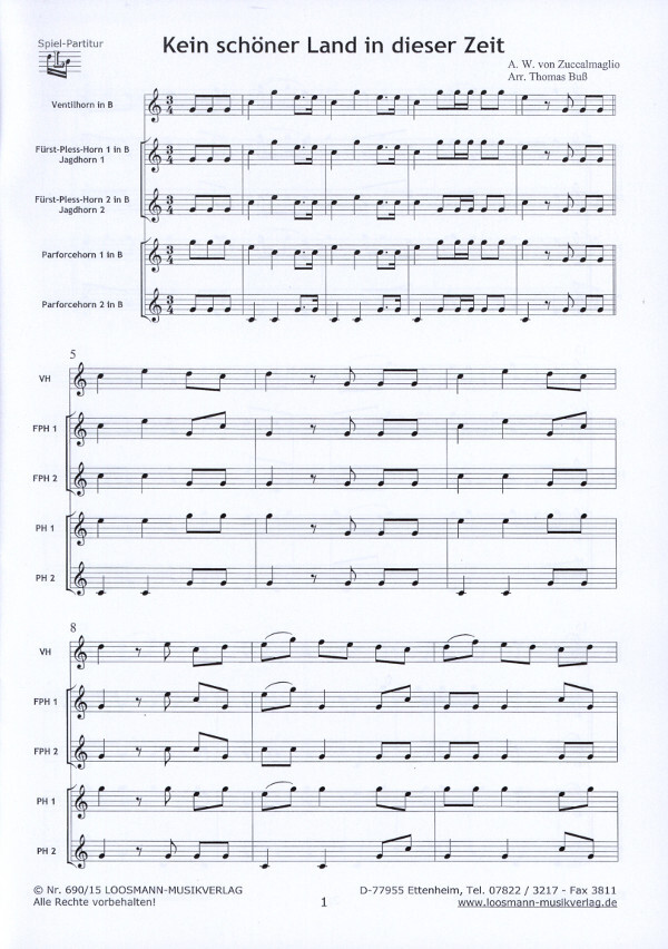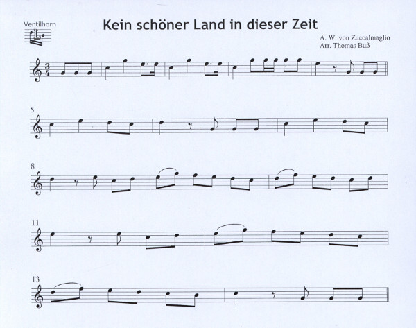 Das bekannte Volkslied in der Bearbeitung für Jagdhornensemble eignet sich besonders als Abschlußmusik für Konzerte oder Hubertusmessen. Die Ventilhornstimme kann als Solostimme oder mit mehreren Spielern ausgeführt werden.